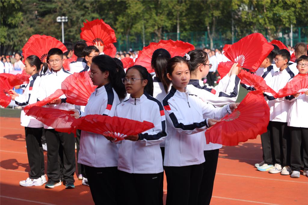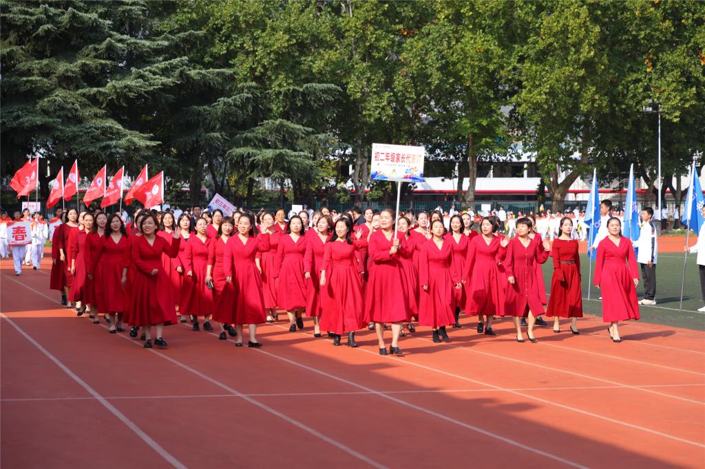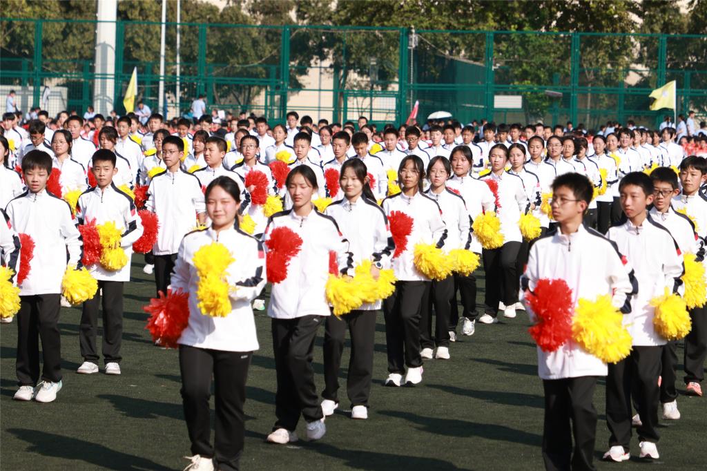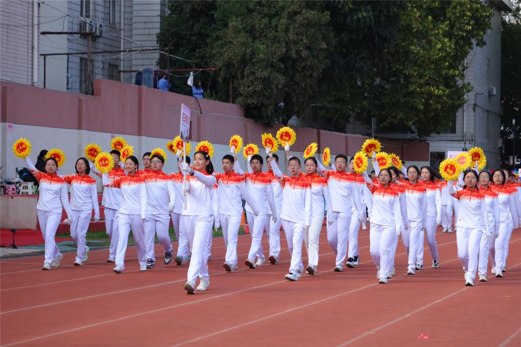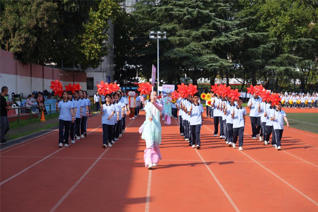 青春飞扬,竞展风华。激昂的乐曲划破长空,伴随着嘹亮的运动员进行曲,仪仗队、裁判员、各班级及家长各方队依次入场。他们昂首阔步,队列整齐、精神饱满地走过主席台。2027届各班师生以不同的艺术形式的主题表演展现了交雁学子朝气蓬勃、昂扬向上的精神风貌,表达了对祖国的深情祝福。