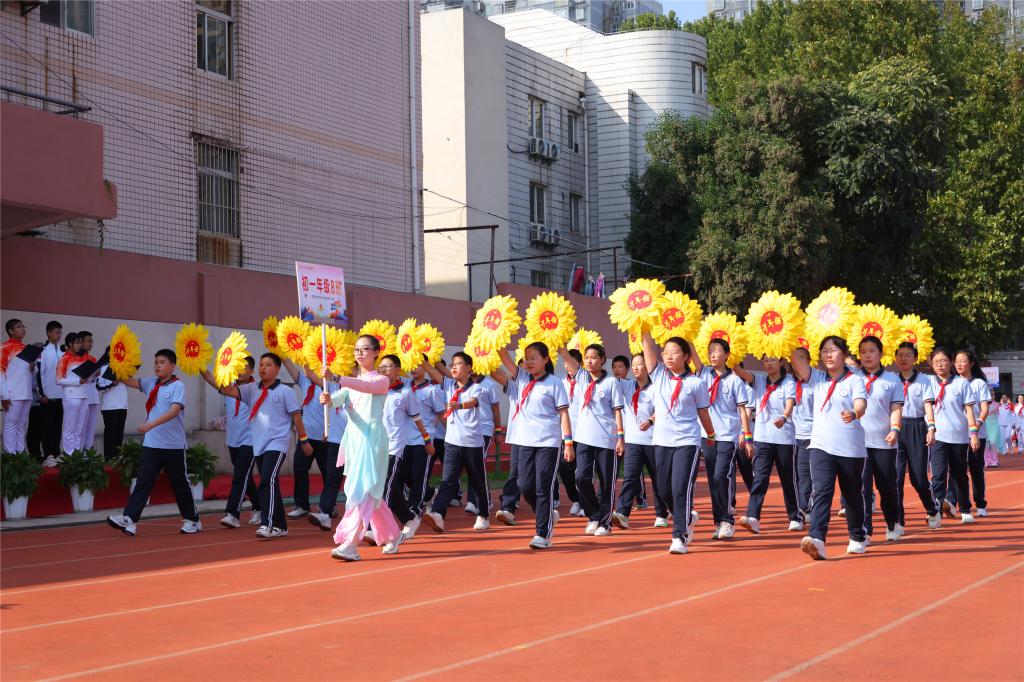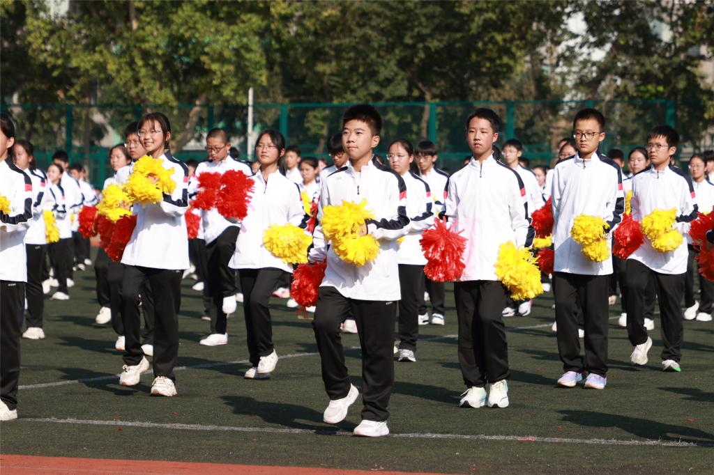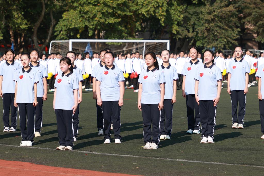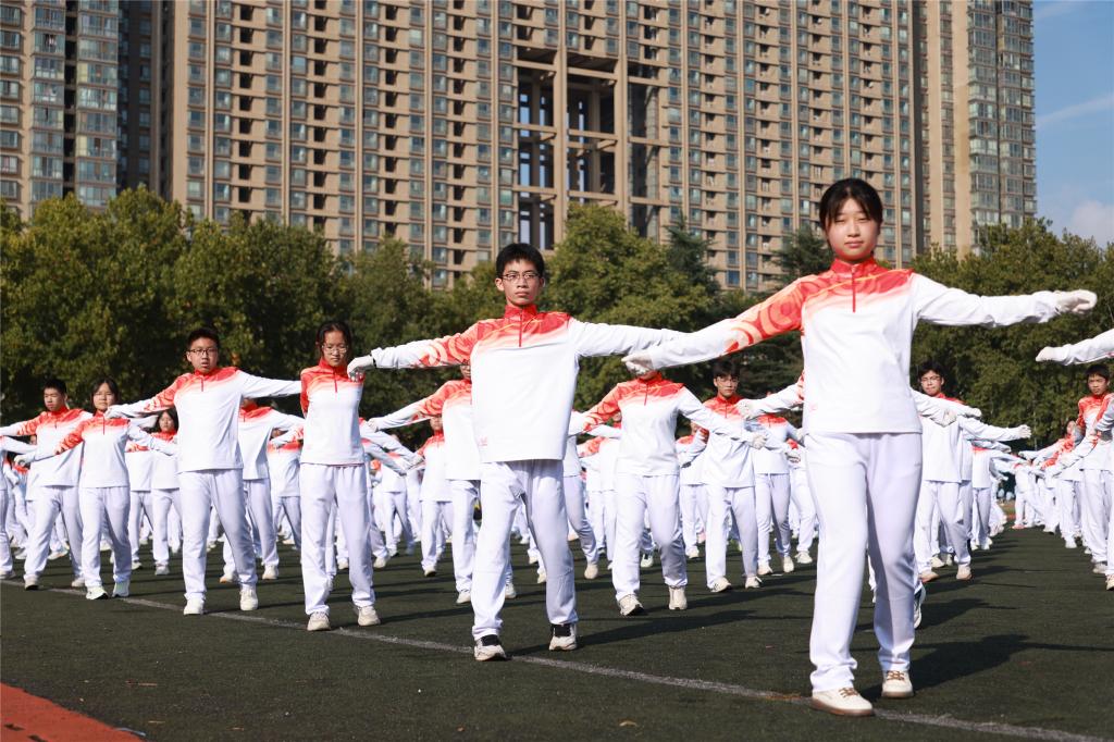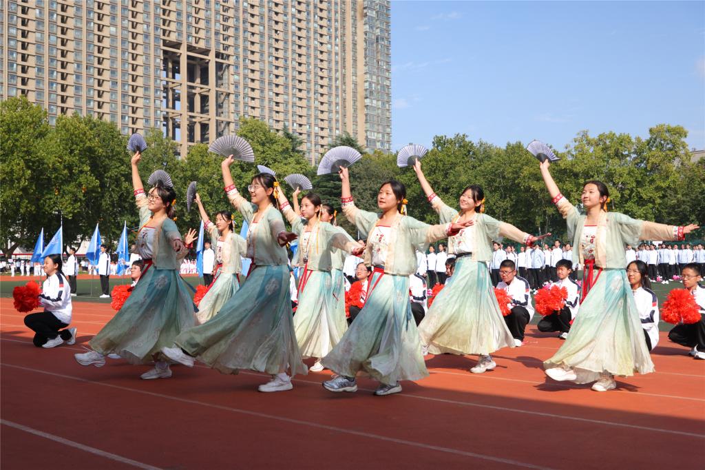 青春飞扬,竞展风华。激昂的乐曲划破长空,伴随着嘹亮的运动员进行曲,仪仗队、裁判员、各班级及家长各方队依次入场。他们昂首阔步,队列整齐、精神饱满地走过主席台。2027届各班师生以不同的艺术形式的主题表演展现了交雁学子朝气蓬勃、昂扬向上的精神风貌,表达了对祖国的深情祝福。
