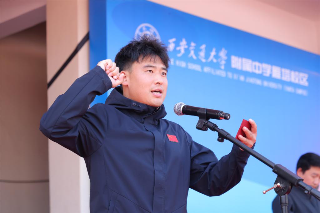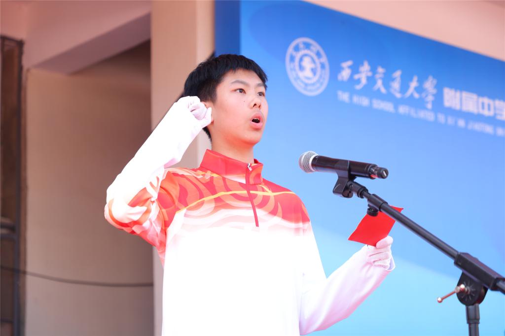 交大附中副校长、雁塔校区执行校长王颖文致开幕词。他希望同学们做敢闯敢拼的追梦者,传承“遇强则强、永争第一”的交大附中体育精神,不断超越自我;做精神传承的践行者,践行“百折不挠、坚忍不拔”的抗战精神,迎接人生挑战;做文明安全的守护者,让“安全、精彩、文明、团结”成为运动会最鲜明的标签。