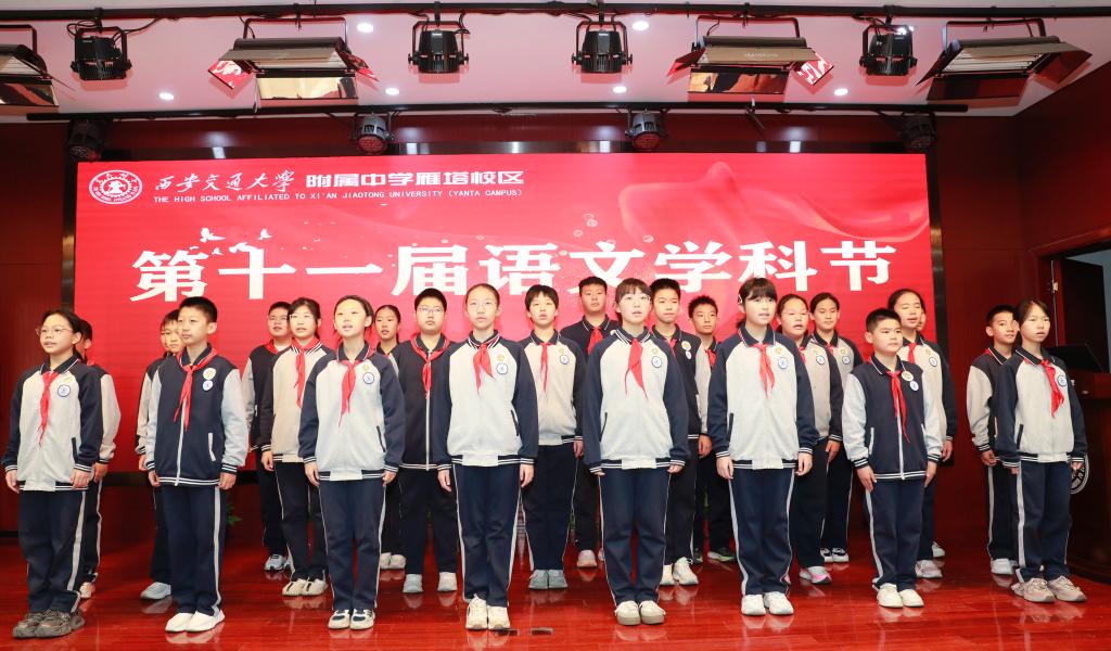 当初冬的暖阳为校园镀上一层温柔的金边,墨香便循着风的轨迹漫过教学楼的窗棂,经典的韵律在走廊间轻轻回荡——12月1日,交大附中雁塔校区第11届语文学科节开幕式如期举行。各行政处室负责人、全体师生共同见证这场以“语文”为钥、开启文化传承与心灵成长的盛宴。