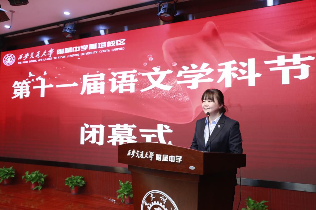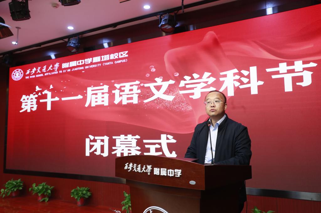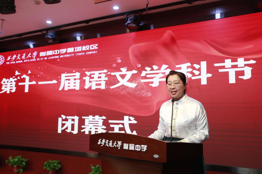 活动尾声,交大附中雁塔校区语文教研组长张玺老师致感谢词。他向莅临现场的领导、辛勤付出的师生以及支持活动的各方表示诚挚谢意,回顾了语文教研组筹备学科节的点滴历程,并表示未来将继续深耕语文教学,创新活动形式,让经典常学常新,让文化传承不息。