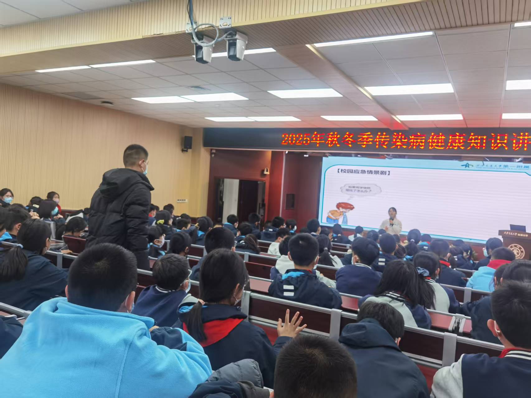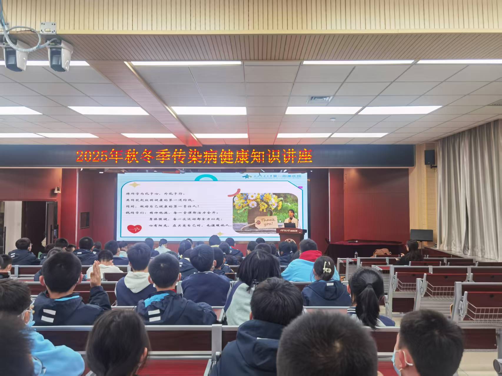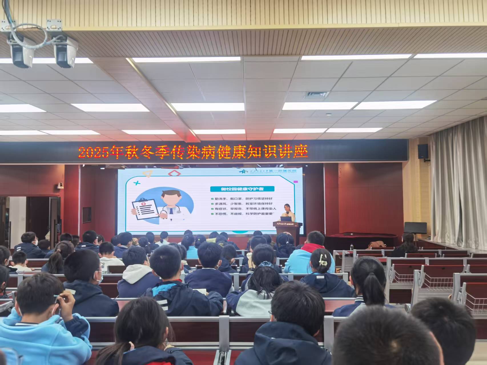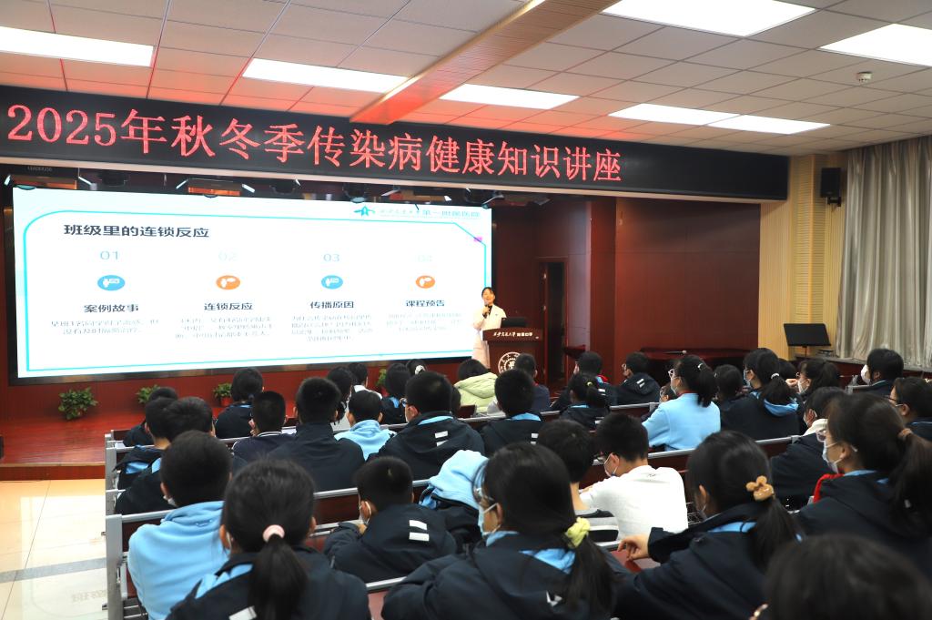为科学应对秋冬季流感、水痘等传染病高发态势,切实筑牢校园健康安全屏障,2025年12月8日下午,我校邀请小寨路社区卫生服务中心传控科和西安交通大学第一附属医院感染科秦丽君护士长,为初一年级部分学生带来秋冬季常见传染病防护知识专题讲座,为同学们的健康成长保驾护航。