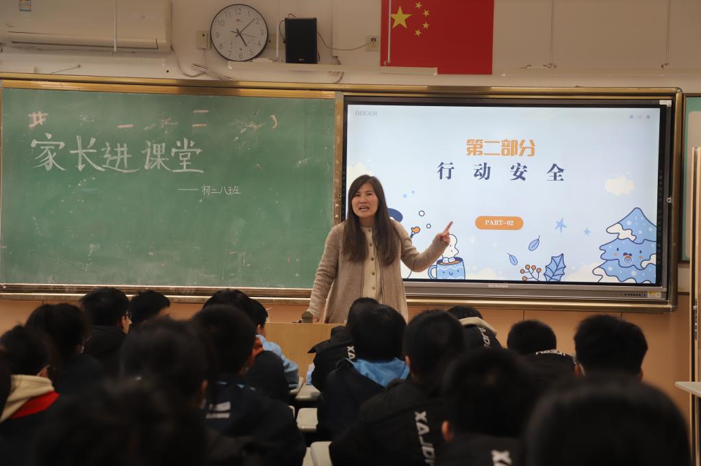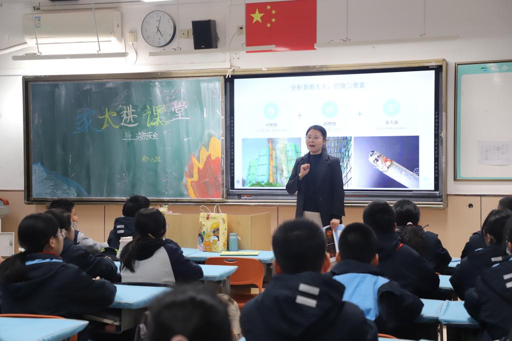 各班班主任全程驻班参与,协助“家长老师”维护课堂秩序、引导互动节奏,用镜头定格下孩子们专注聆听、积极互动的精彩瞬间。课后,学生们纷纷点赞:“这样的班会课太有意思了!不仅学到了课本外的实用知识,还发现爸爸妈妈藏着‘超能力’,看到了他们不一样的魅力。”家长们也感触颇深,一位从事安全工作的家长分享道:“以老师的身份站上讲台,把专业知识分享给孩子们,看着他们一双双求知的眼睛和认真的模样,我既欣慰又感动。这不仅是一次知识传递,更是一场特别的亲子心灵对话。”