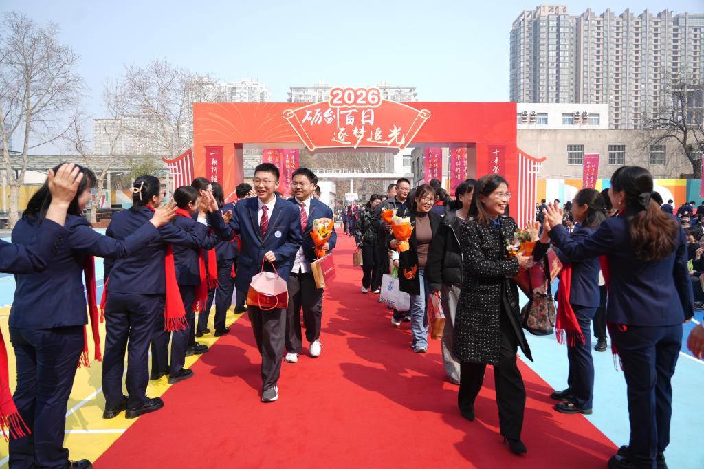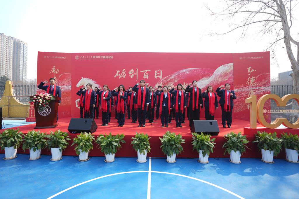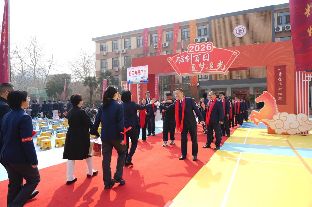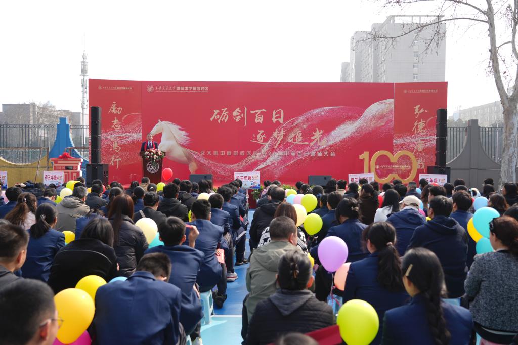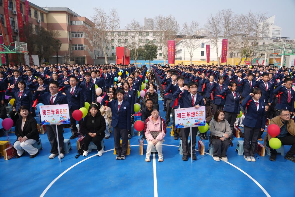 又是一年春好处,扬鞭奋蹄正当时。3月11日上午,交大附中雁塔校区举行中考百日誓师大会,为初2026届学子的中考冲刺征程加油助威。全体初三师生与家长齐聚一堂,共同见证这一激动人心的时刻。