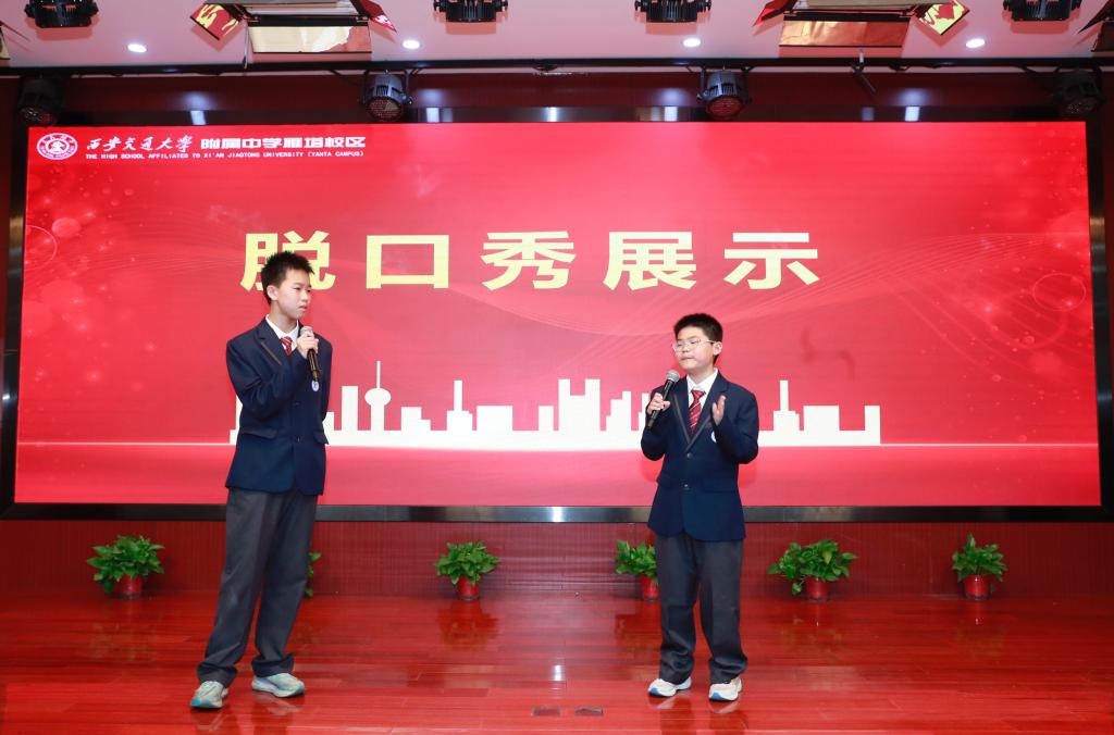 初一年级带来数学主题脱口秀,以轻松幽默的形式解读数学知识,让枯燥的原理变得生动易懂,全场欢声笑语不断。
