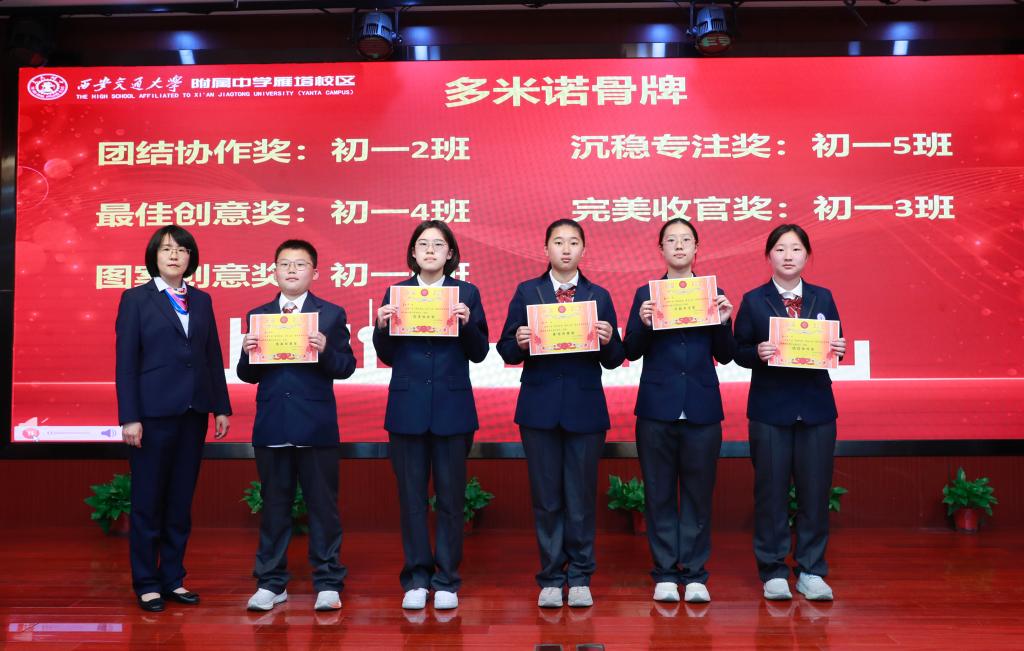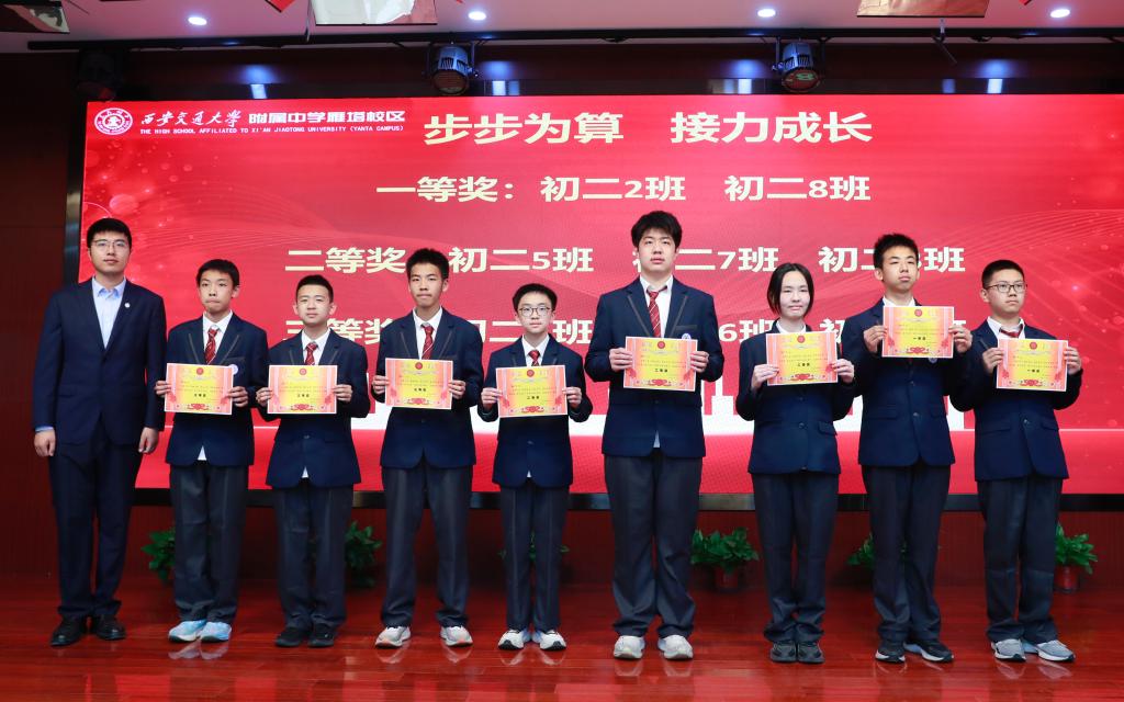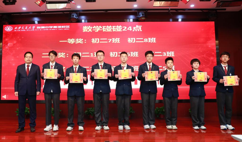 随后,学校领导依次为初二年级“数字碰碰24点”“步步为算助力成长”、初一年级“秀数学”“多米诺骨牌”的活动获奖班级颁奖,肯定同学们在活动中的优异表现,鼓励大家深耕数学世界,不断攀登思维高峰。